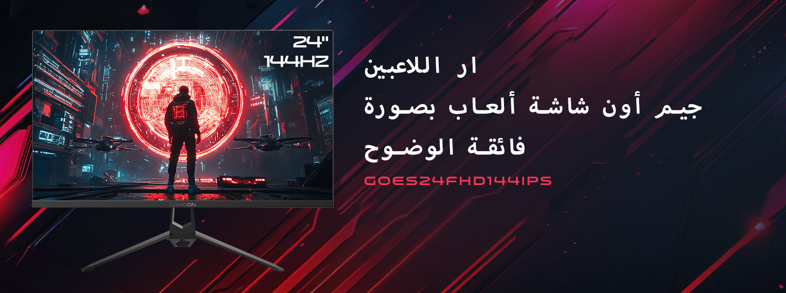 جيم أون, شاشة الألعاب فئة ايسينشال بحجم 24 بوصة, 144 هرتز, زمن الاستجابه 0.5, اتش دي ام اي 2.1 تدعم سوني 5 - أسود