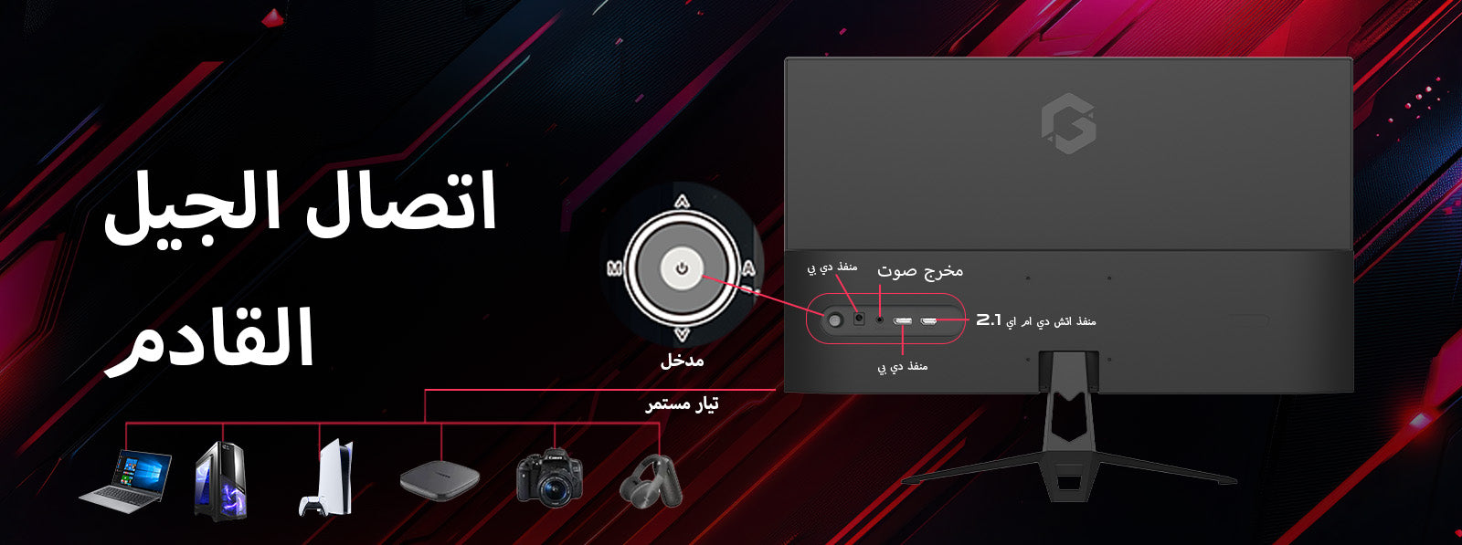 · اتصال من الجيل التالي – HDMI 2.1، وDisplayPort 1.4، ومقبس سماعة الرأس