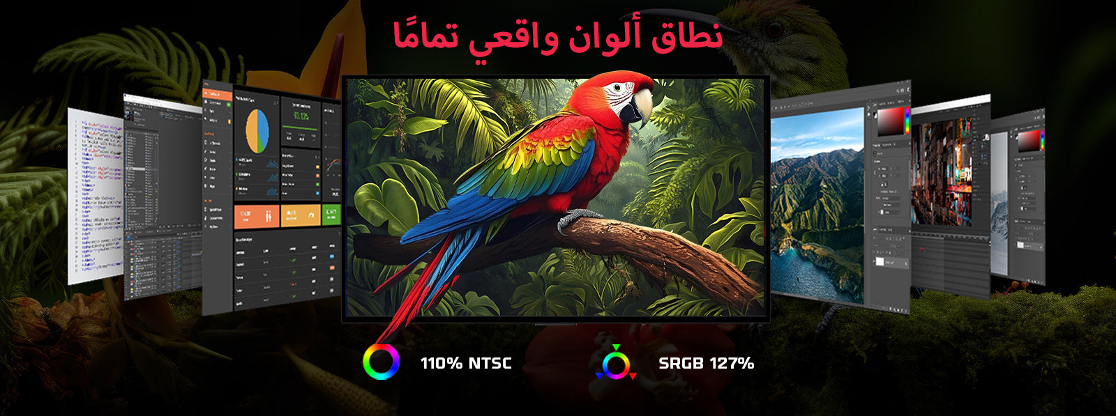 •  نطاق ألوان واسع – 110% NTSC، 132% sRGB، 109% AdobeRGB، 98.5% DCI-P3