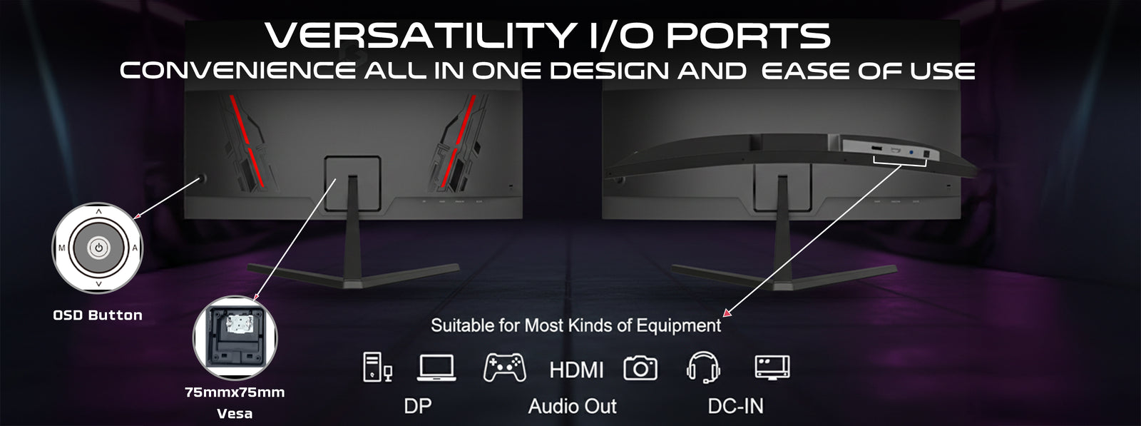 يمكنك الاتصال بسهولة بالأجهزة الحديثة باستخدام منفذ HDMI 2.1 ومنفذ DP 1.4 ومنفذ سماعة رأس 3.5 ملم. تعمل السماعات المزدوجة المدمجة على تحسين تجربتك، مما يجعلها مثالية للألعاب والترفيه والعمل اليومي.