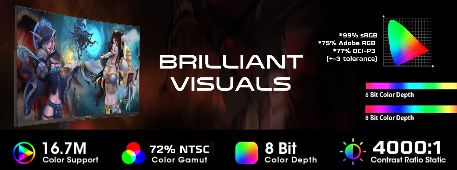 استمتع بجودة صورة مذهلة بفضل نسبة تباين 4000:1، وسطوع 300 شمعة، ودقة ألوان sRGB بنسبة 99%. بالإضافة إلى دعم تقنية HDR10 و16.7 مليون لون، توفر الشاشة صورًا غنية ونابضة بالحياة ودرجات لونية سينمائية عميقة.