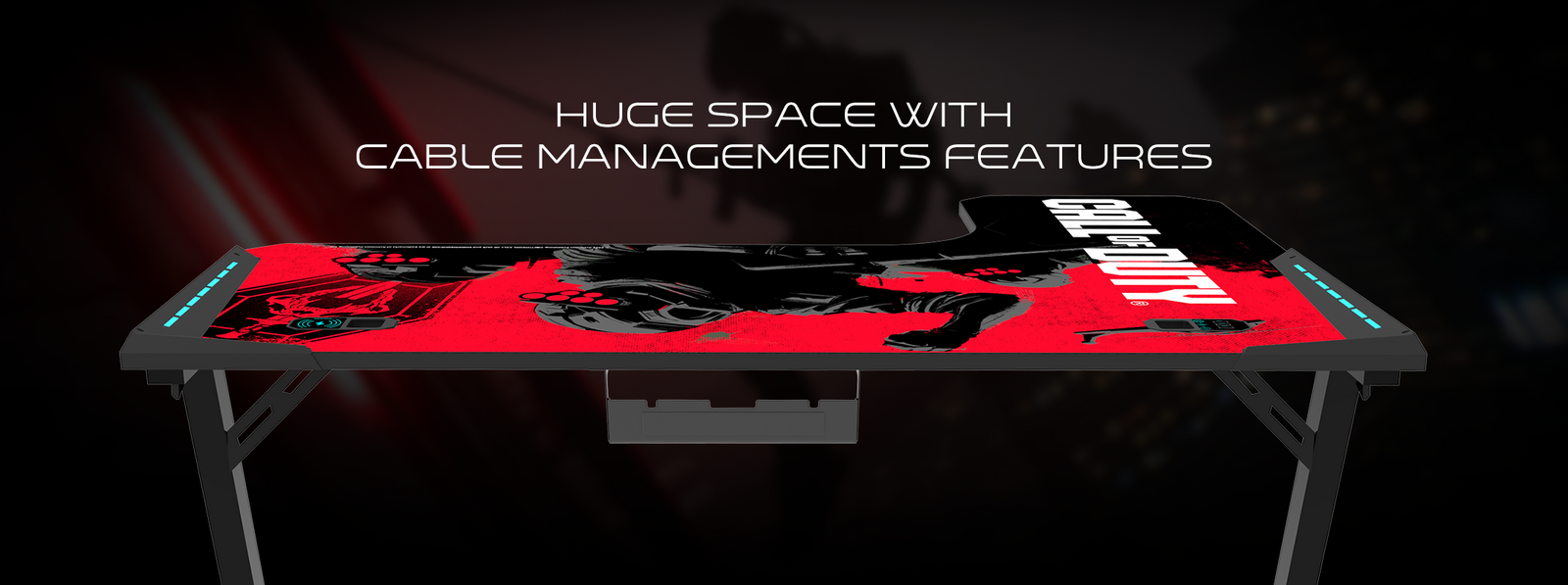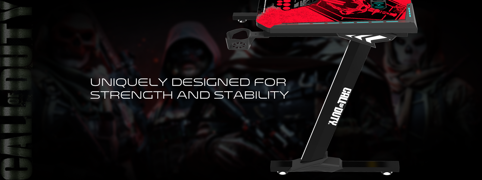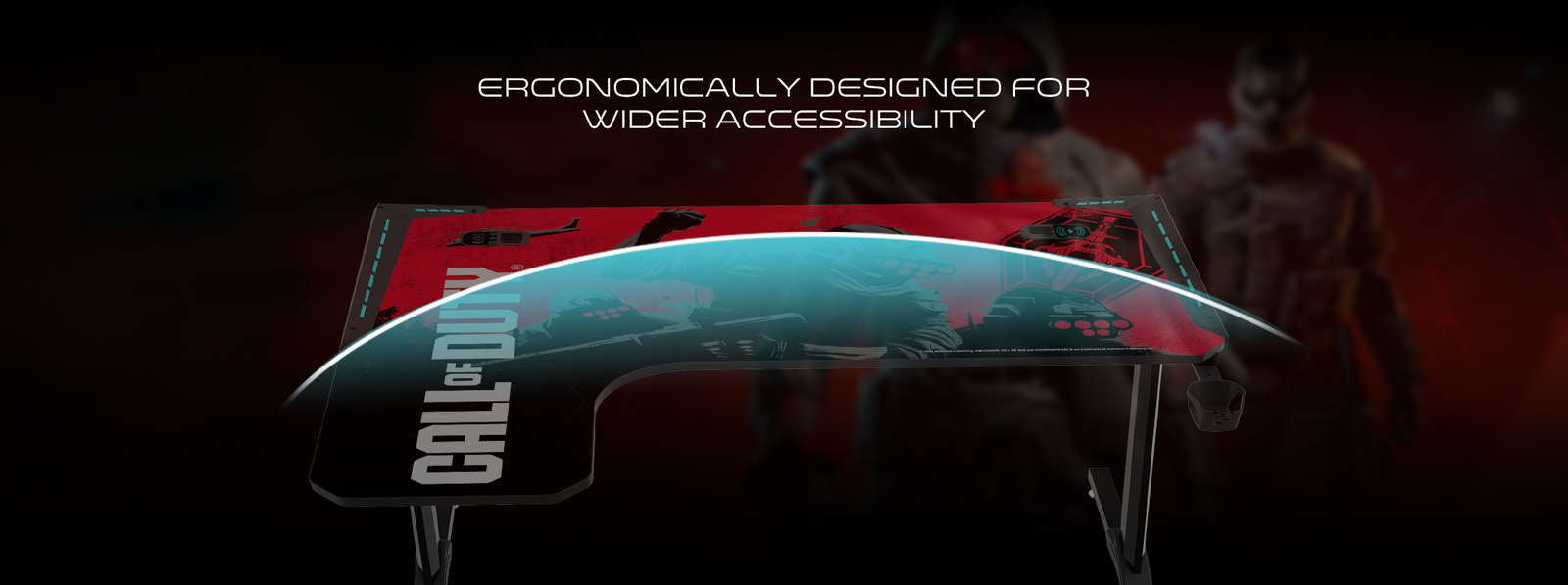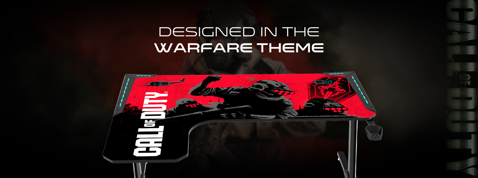 This Call of Duty themed desk is specially designed to provide more space to store your equipment and allows a better posture for you. The cup holder and headphone hook keep your drinks and headphones right at your fingertips.