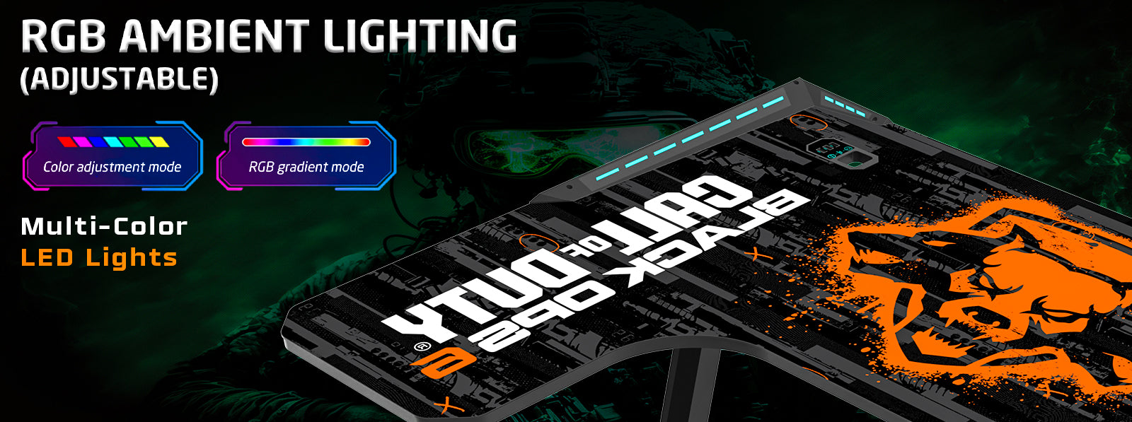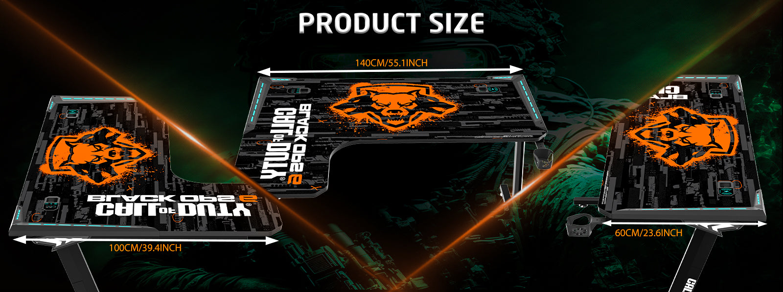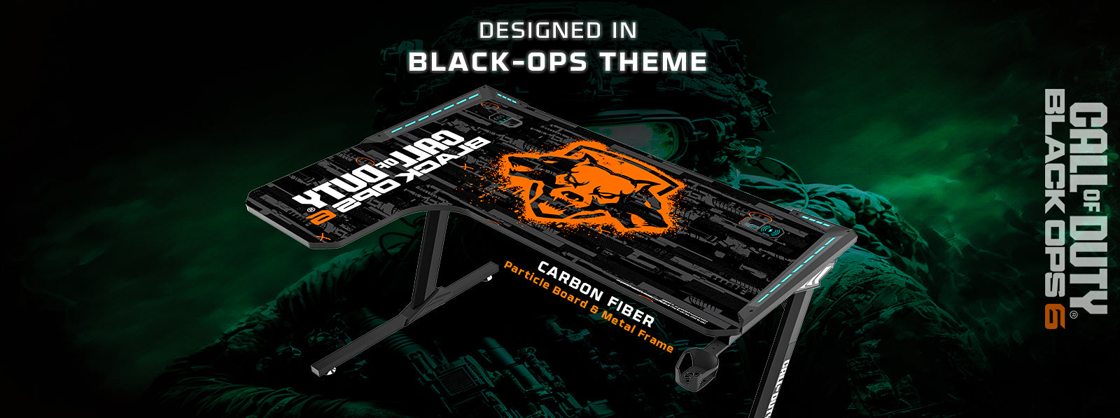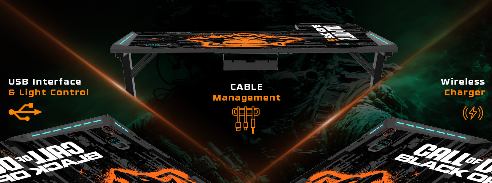 Call Of Duty (COD) Raptor BLKOPS6-L Series L-Shaped RGB Flowing Light Gaming Desk With Mouse pad, Headphone Hook, Cup Holder, Cable Management, Gamepad Holder, Qi Wireless Charger & USB Hub - Black