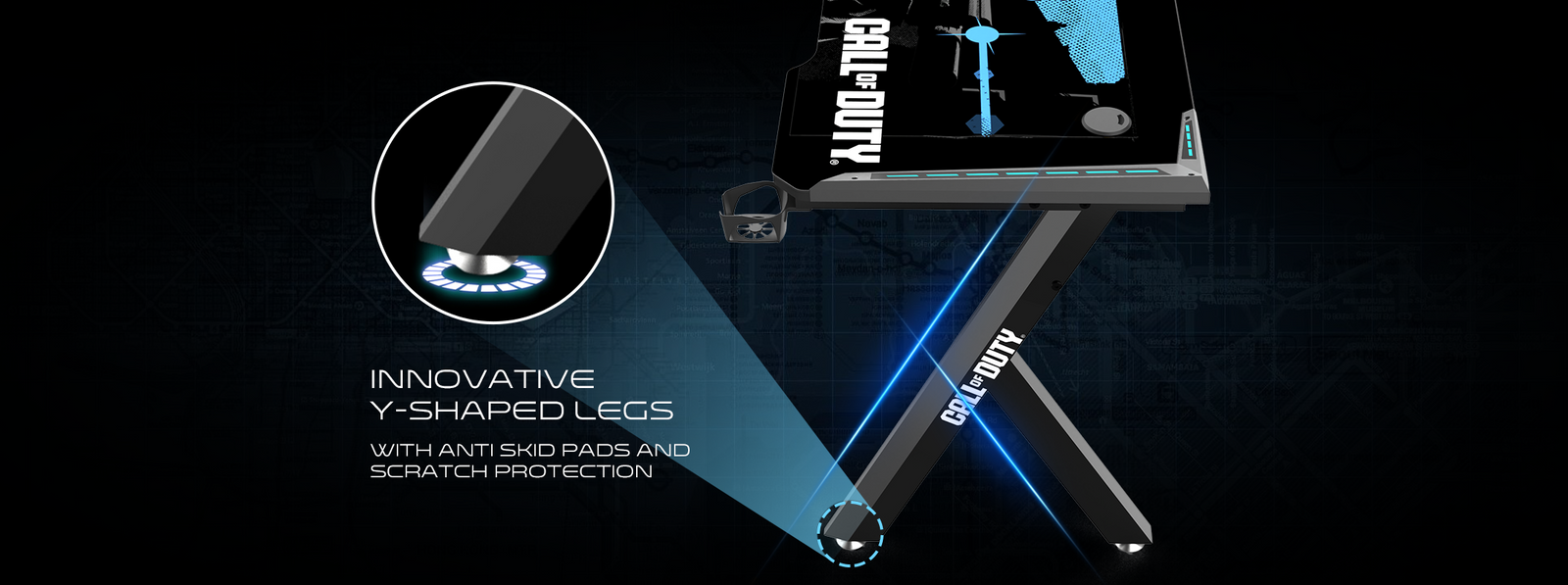 The Y-shaped legs of our gaming desk redefine stability and style, offering a dynamic and futuristic design that enhances your gaming experience. Crafted with precision engineering, these legs provide a solid foundation for your gaming setup, ensuring wobble-free gameplay even during the most intense moments.
