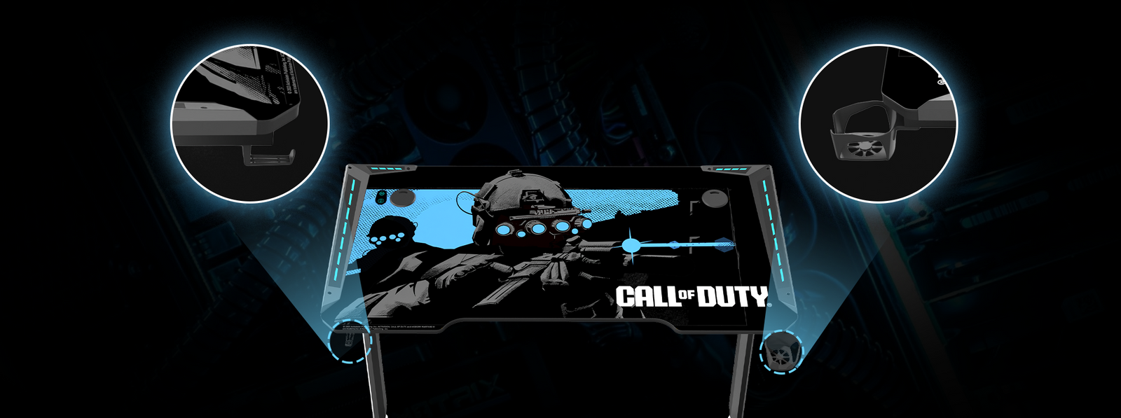 Inspired by the adrenaline-fueled battles and dynamic landscapes of the iconic franchise, this gaming desk offers both style and functionality. With sleek lines and bold graphics reminiscent of the game's aesthetic, it brings the essence of the battlefield to your gaming setup.