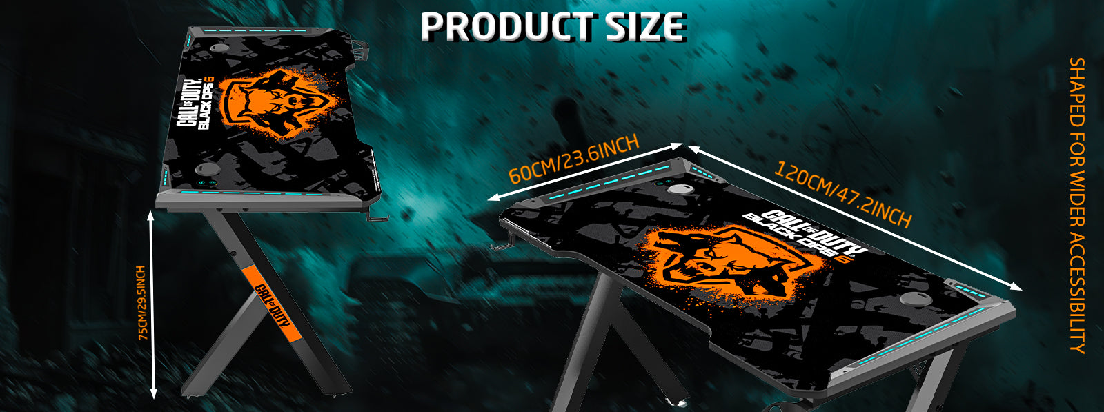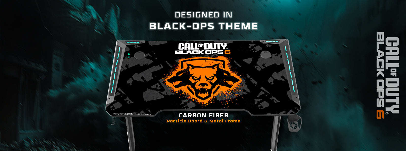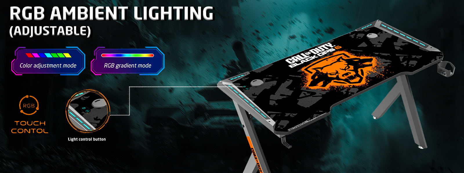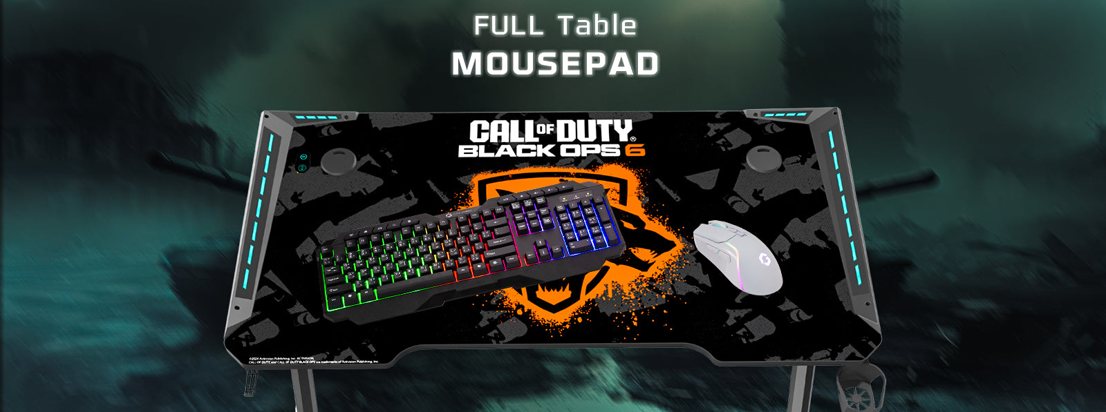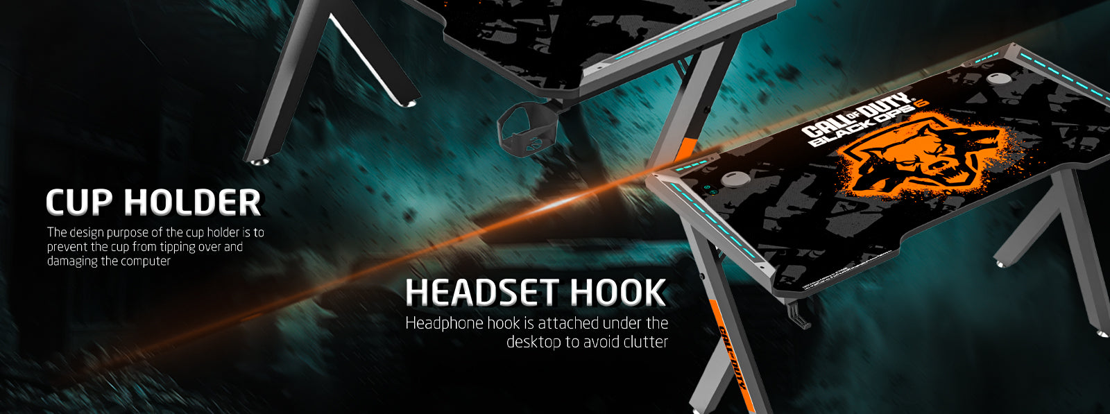 Call Of Duty (COD) Hawksbill BLKOPS6 Series RGB Flowing Light Gaming Desk With Mouse pad, Headphone Hook & Cup Holder - Black