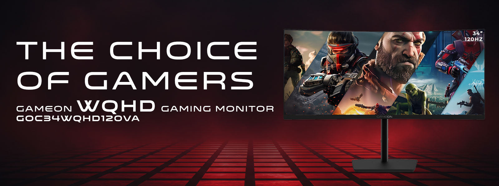 GAMEON GOC34WQHD120VA Spectra Pro Series 34" WQHD, 120Hz, MPRT 0.5ms, HDMI 2.1, Fast VA Panel Curved Gaming Monitor 1500R 21:9 (Supports PS5) - Black