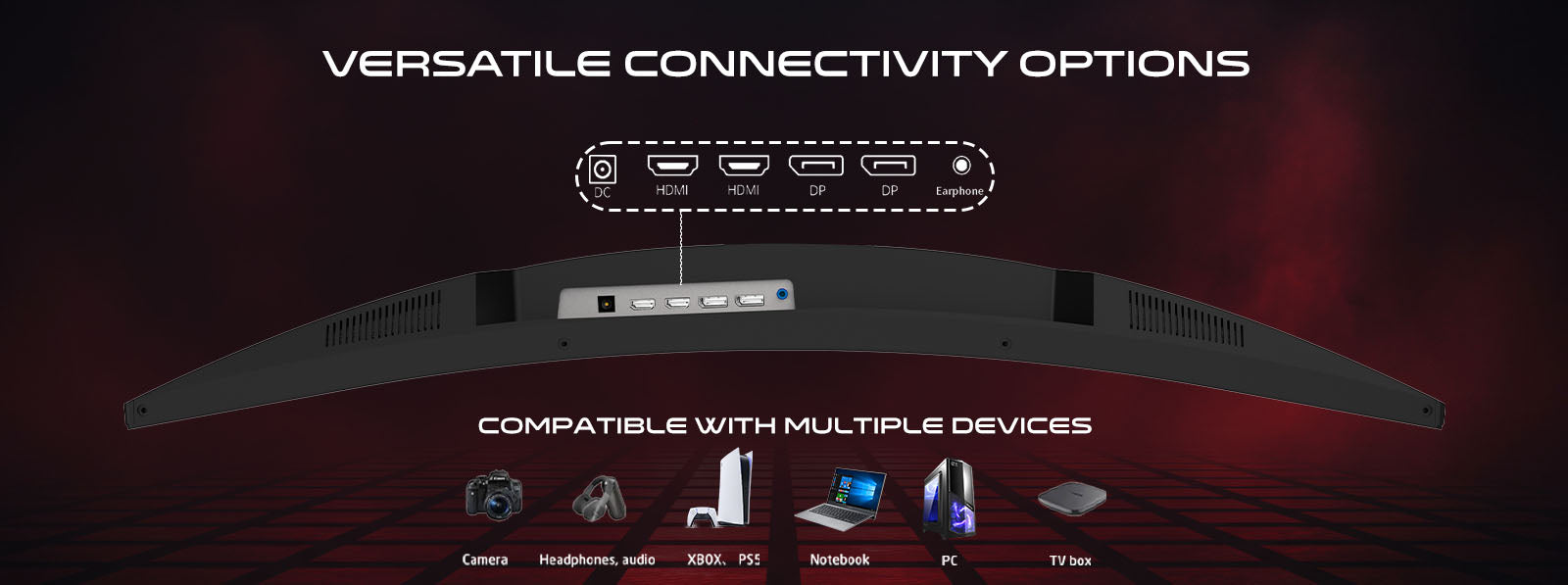 Stay ready for any setup with Dual HDMI 2.1 ports, Dual DisplayPort 1.4, and a headphone jack. Whether it’s PC, console, or multi-device, you’ll enjoy maximum flexibility and next-gen performance.