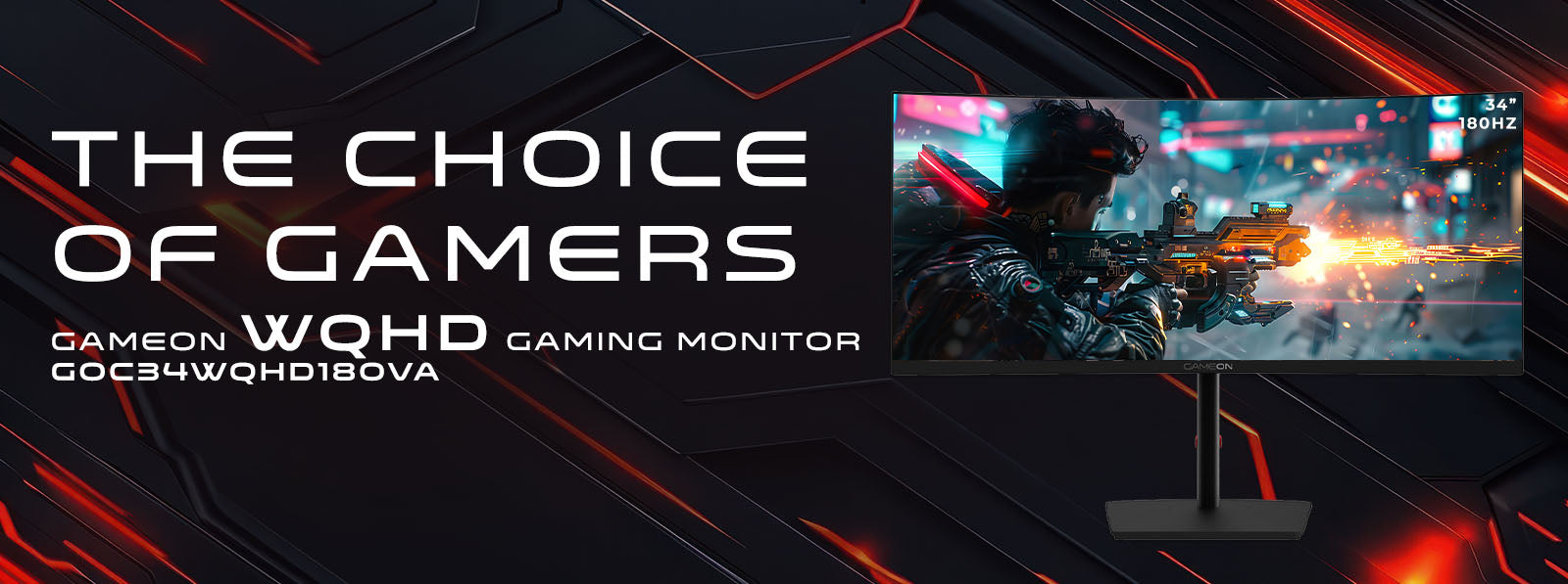 GAMEON GOC34WQHD180VA Spectra Pro Series 34" WQHD, 180Hz, MPRT 0.5ms, HDMI 2.1, Fast VA Panel Curved Gaming Monitor 1500R 21:9 (Supports PS5) - Black