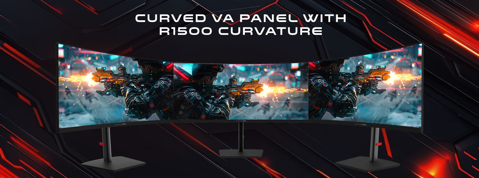 Get pulled into the action with a 1500R curved FAST VA panel that matches your natural field of view. The 21:9 cinematic aspect ratio surrounds you in gameplay, making every moment feel larger than life.