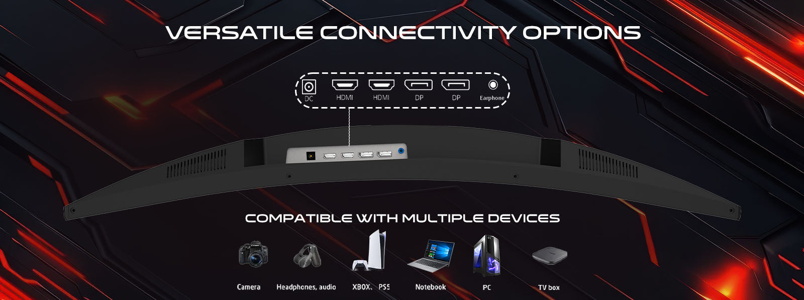 Stay ready for any setup with Dual HDMI 2.1 ports, Dual DisplayPort 1.4, and a headphone jack. Whether it’s PC, console, or multi-device, you’ll enjoy maximum flexibility and next-gen performance.