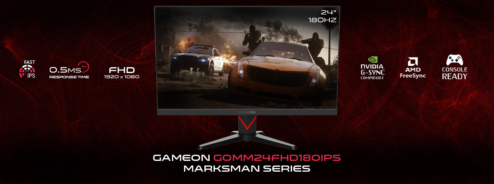 Unlock elite performance with the Gameon GOMM24FHD180IPS – a 24-inch 1920x1080 FHD gaming powerhouse designed to deliver next-level visuals and speed. With a contrast ratio of 1000:1, ultra-vivid 16.7M colors, and lightning-fast MPRT 0.5ms response time, it’s built for victory across every frame.