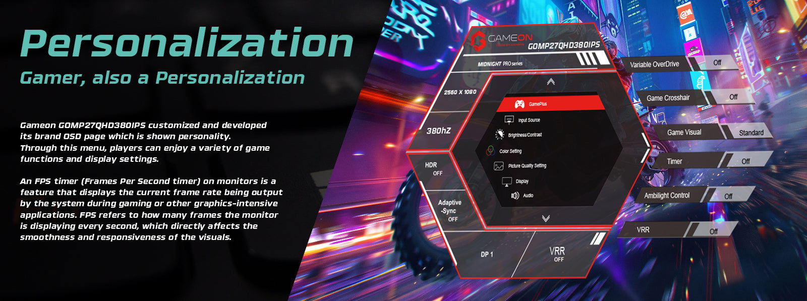 GAMEON GOMP27QHD380IPS Midnight Pro Series 27" QHD, 380Hz, MPRT 0.5ms, HDMI 2.1, Fast IPS Gaming Monitor (Supports PS5) - Black