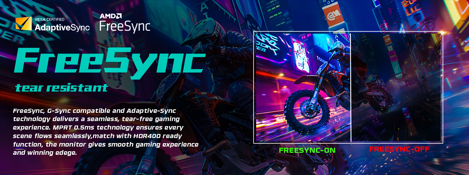 - Adaptive Sync & Response Time: Eliminate screen tearing and ghosting with Adaptive Sync technology and lightning-fast 0.5ms MPRT response.