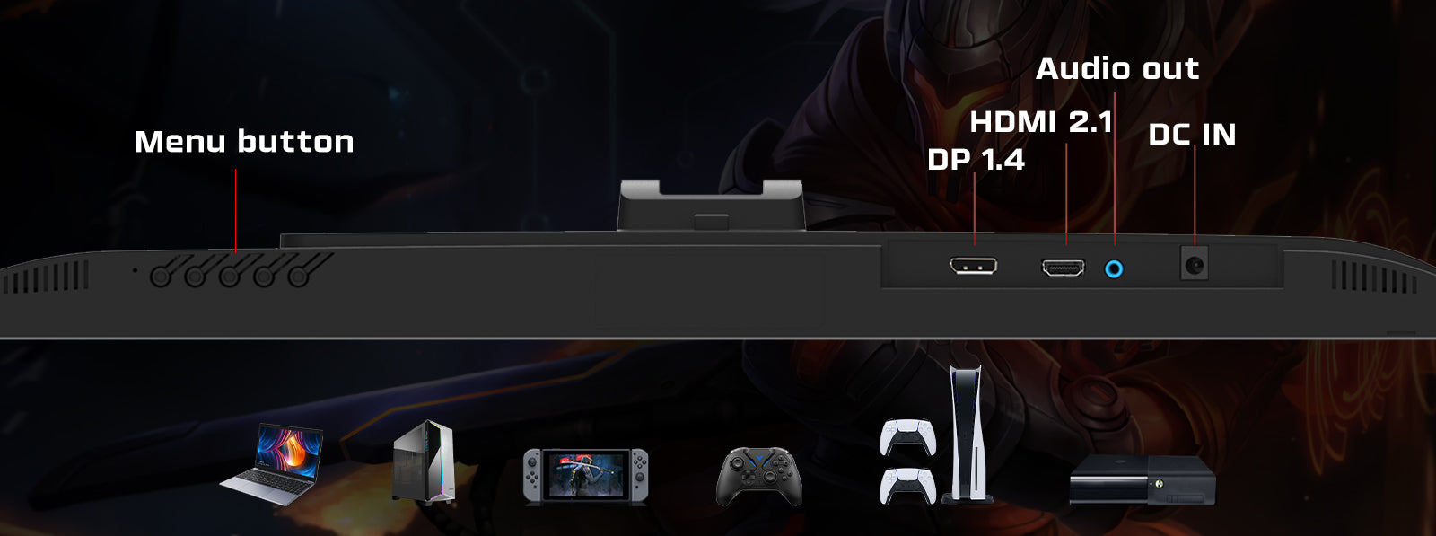 Equipped with dual HDMI 2.1, dual DP 1.4 ports, and an audio output, this monitor offers extensive connectivity options for your devices.