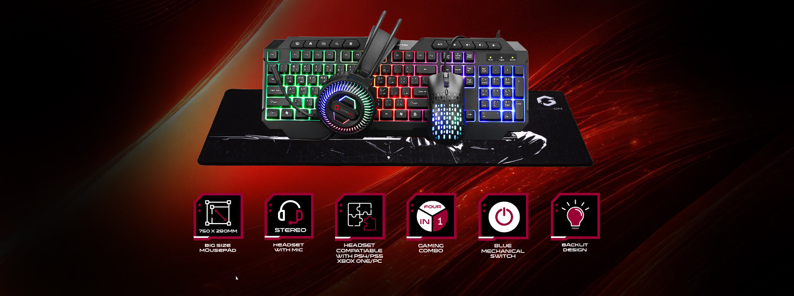 The comprehensive gaming accessories combo comes with a Gaming Keyboard, Gaming Mouse, Mouse Pad and a Gaming Headset, chosen to from among the best-in-class gaming accessories bundle.