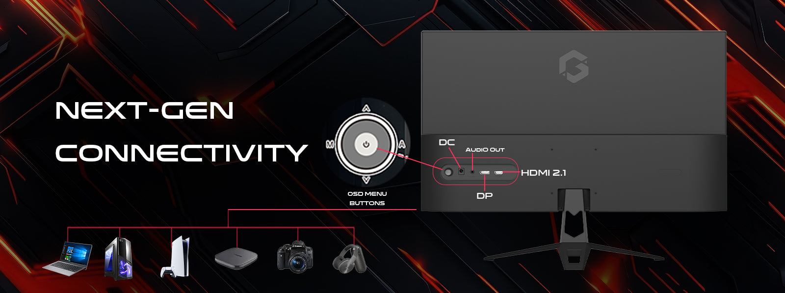 · Next-Gen Connectivity – HDMI 2.1, DisplayPort 1.4, and headphone jack