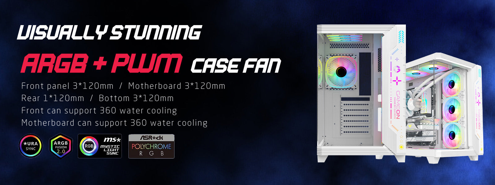 Illuminate your gaming setup with 7 pre-installed ARGB+PWM fans, delivering customizable and dynamic lighting effects.