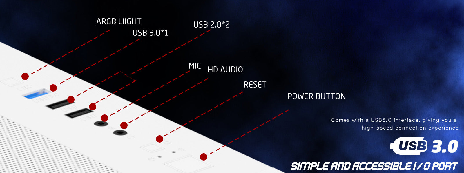 Built with sturdy SPCC material and a tempered glass side panel, combining durability with a sleek look.
