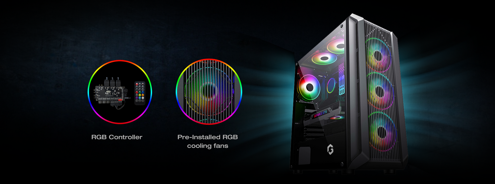 The Trident S-series gaming PC case features seamless front and side acrylic panels for stunning visuals. It's capacity of 6x RGB High Air Flow Fans, a remote & controller keeps the system efficent.