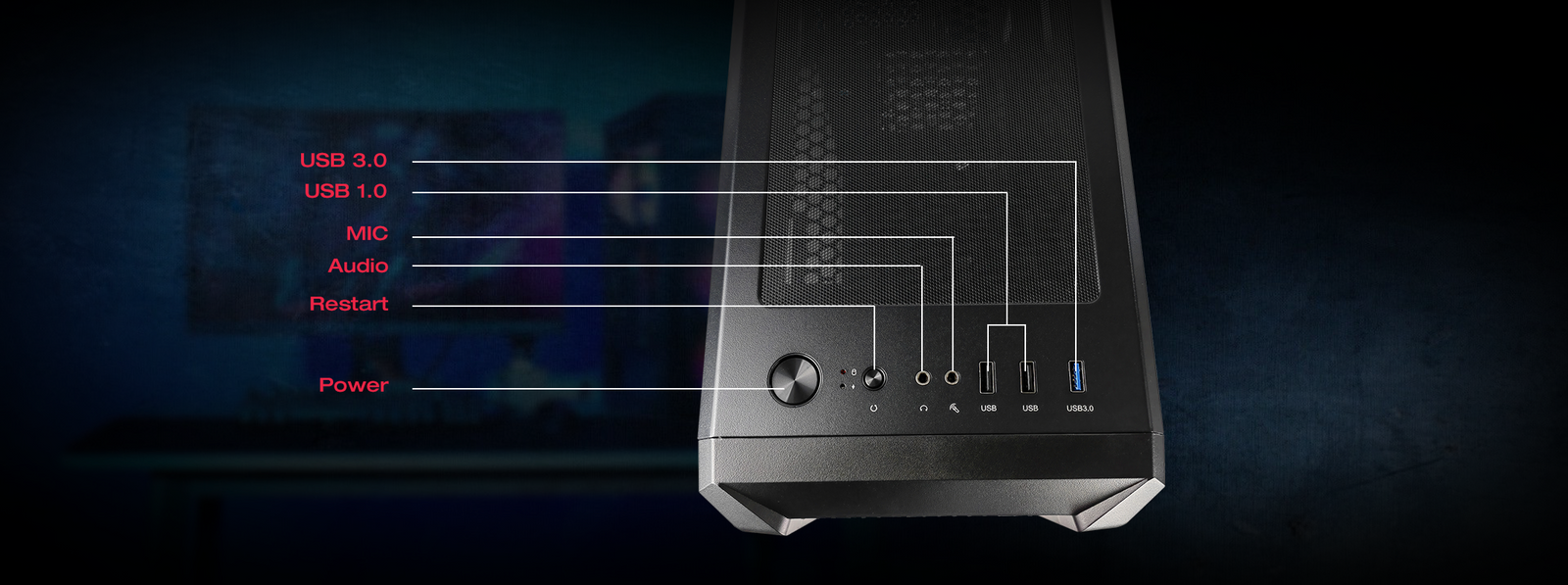 Provided with the I/O panel at the top, it is being made convenient for the Gamers to access the multiple I/O ports quickly and easily for comfortable gaming experience. The High-speed data transfer ports make the process even smoother and Faster.