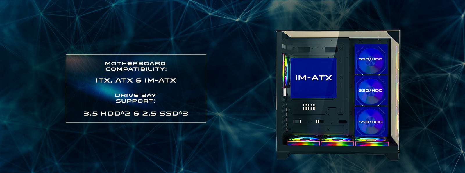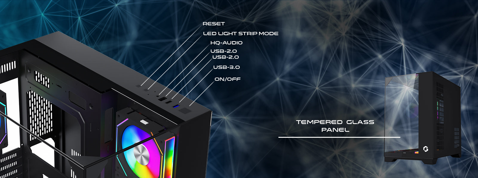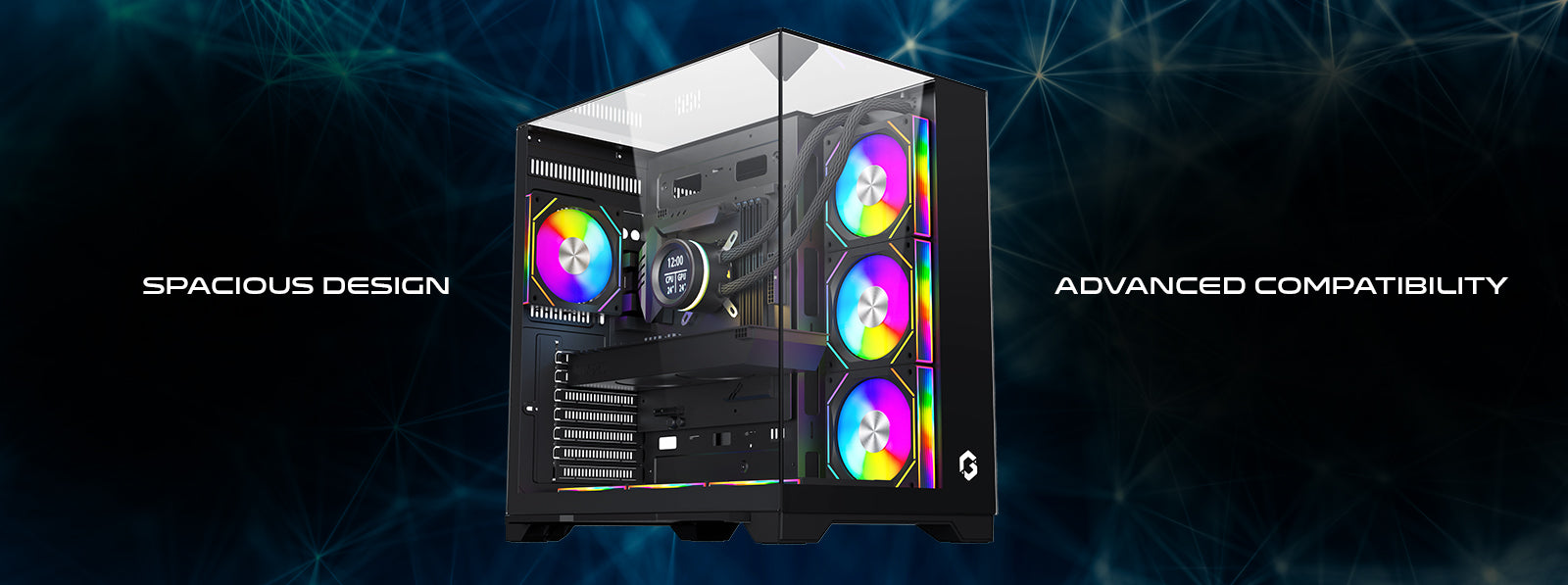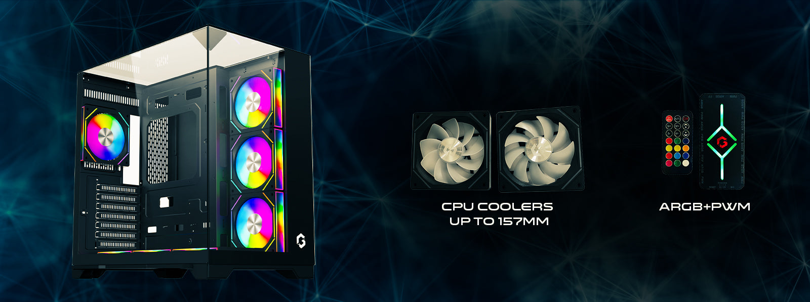 Equipped with support for multiple fans, including three 12cm fans on the side, one 12cm fan at the rear, and three 12cm fans at the bottom, this case ensures optimal airflow. Additionally, it supports 360mm water cooling systems, keeping your components cool under heavy loads. The ARGB+PWM lighting adds a touch of personalization and style to your setup.