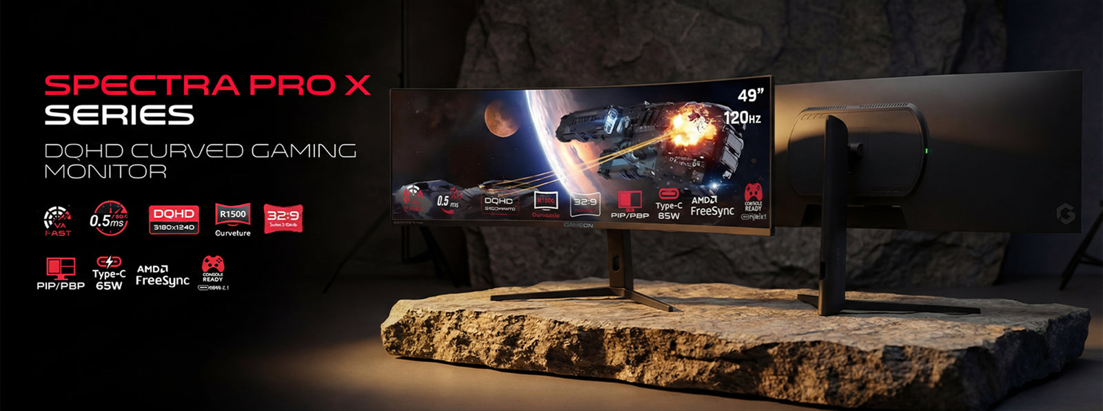 Experience gaming on a breathtaking 49” ultra-wide display. With 5K DQHD (5120×1440) resolution, 120Hz refresh rate, and immersive 32:9 panoramic view, see more, react faster, dominate harder.