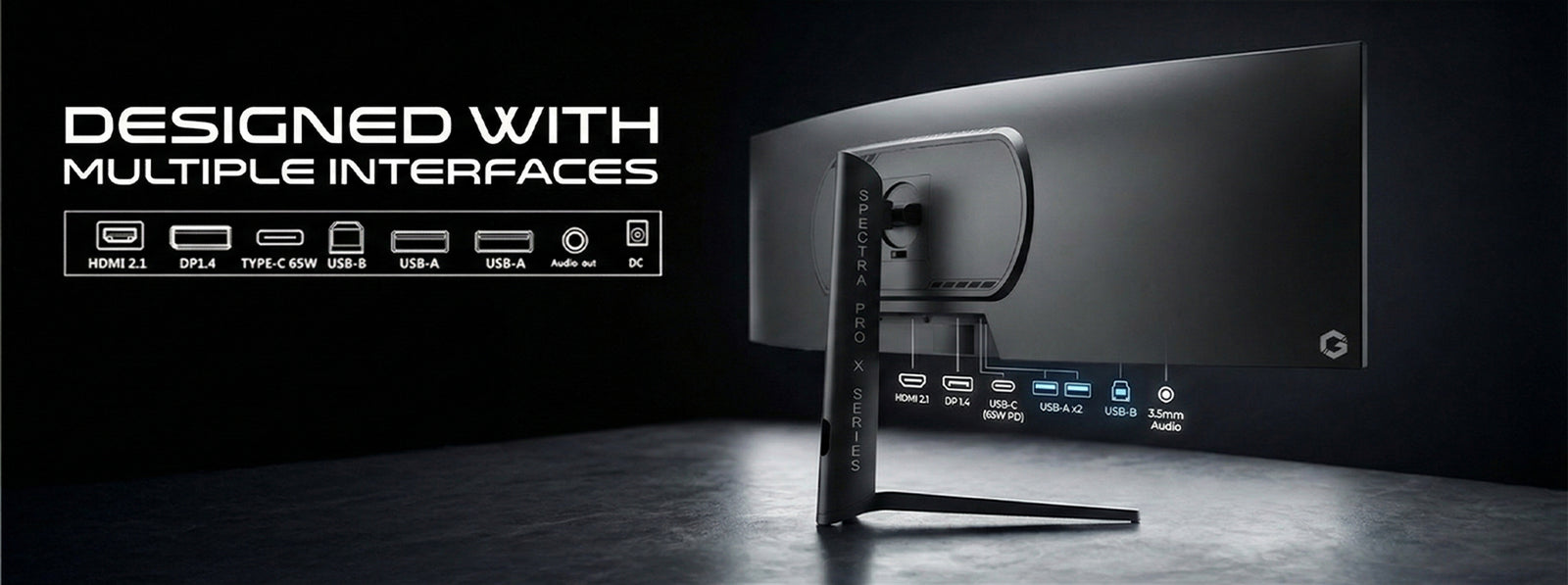 Connect everything you need: HDMI 2.1 • DP 1.4 • USB-C (65W) • USB Hub • Headphone Jack Versatile connectivity for gaming, work, and multitasking.
